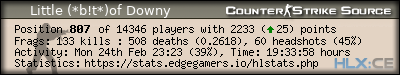 | 1 | =(eGO)= | DUST2 | NO AWPS/AUTOS | EdgeGamers.com | 52 | 100.00% | 208 | 0.2500 | 29 | 100.00% | 0.5577 |