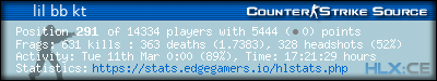 | Rank | Server | Kills | % | Ratio | Deaths | K:D | Headshots | Percentage of Headshots | % | HS:K |