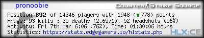 | Rank | Name | Time | Last Use | Kills | Deaths | K:D | Headshots | HS:K | Suicides | Accuracy |