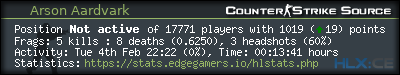 Rank | Map | Kills | % | Ratio | Deaths | % | Ratio | K:D | Headshots | % | Ratio | HS:K |