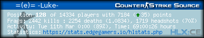 | Rank | Name | Time | Last Use | Kills | Deaths | K:D | Headshots | HS:K | Suicides | Accuracy |