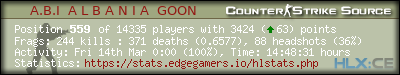 2 | A.B.I A L B A N I A GOON | 0d 03:44:46h | 2025-02-19 23:23:28 | 55 | 97 | 0.57 | 20 | 0.36 | 0 | 6.7% |