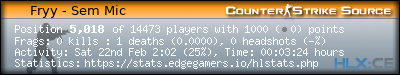 Rank | Name | Time | Last Use | Kills | Deaths | K:D | Headshots | HS:K | Suicides | Accuracy |
