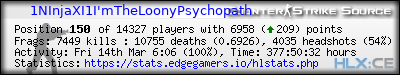 | Rank | Name | Time | Last Use | Kills | Deaths | K:D | Headshots | HS:K | Suicides | Accuracy |