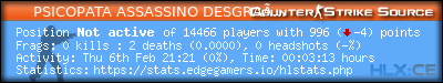 | Rank | Name | Time | Last Use | Kills | Deaths | K:D | Headshots | HS:K | Suicides | Accuracy |