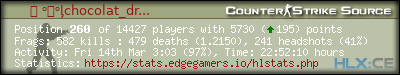 | Rank | Name | Time | Last Use | Kills | Deaths | K:D | Headshots | HS:K | Suicides | Accuracy |