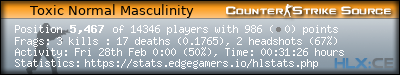 | Headshots per Kill: | 0.5385 (0.6000*) | |