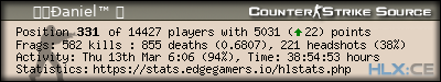 | Rank | Name | Time | Last Use | Kills | Deaths | K:D | Headshots | HS:K | Suicides | Accuracy |