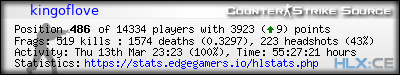 | 1 | =(eGO)= | DUST2 | NO AWPS/AUTOS | EdgeGamers.com | 134 | 100.00% | 395 | 0.3392 | 71 | 100.00% | 0.5299 |