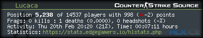 Rank | Map | Kills | % | Ratio | Deaths | % | Ratio | K:D | Headshots | % | Ratio | HS:K |