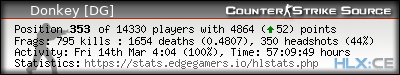 | 1 | =(eGO)= | DUST2 | NO AWPS/AUTOS | EdgeGamers.com | 238 | 100.00% | 557 | 0.4273 | 89 | 100.00% | 0.3739 |