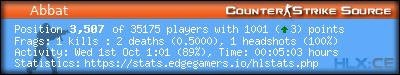 Rank | Map | Kills | % | Ratio | Deaths | % | Ratio | K:D | Headshots | % | Ratio | HS:K |