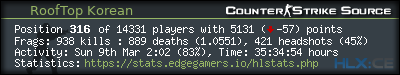 | Headshots per Kill: | 0.4437 (0.2941*) | |