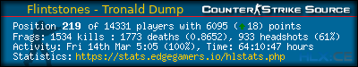 | 1 | =(eGO)= | DUST2 | NO AWPS/AUTOS | EdgeGamers.com | 217 | 100.00% | 274 | 0.7920 | 137 | 100.00% | 0.6313 |