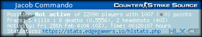Rank | Map | Kills | % | Ratio | Deaths | % | Ratio | K:D | Headshots | % | Ratio | HS:K |