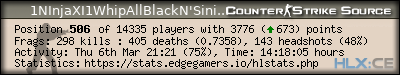 | Rank | Name | Time | Last Use | Kills | Deaths | K:D | Headshots | HS:K | Suicides | Accuracy |