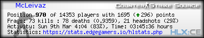 | Rank | Name | Time | Last Use | Kills | Deaths | K:D | Headshots | HS:K | Suicides | Accuracy |