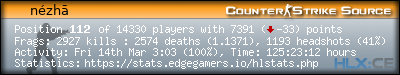 | Rank | Name | Time | Last Use | Kills | Deaths | K:D | Headshots | HS:K | Suicides | Accuracy |