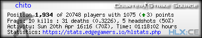 Rank | Map | Kills | % | Ratio | Deaths | % | Ratio | K:D | Headshots | % | Ratio | HS:K |
