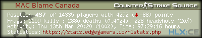 Rank | Server | Kills | % | Ratio | Deaths | K:D | Headshots | Percentage of Headshots | % | HS:K |