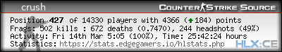| Rank | Server | Kills | % | Ratio | Deaths | K:D | Headshots | Percentage of Headshots | % | HS:K |