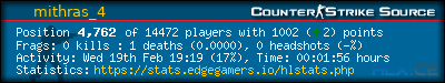 1 | de_dust2 | 1 | 100.00% | 3 | 100.00% | 0.33 | 0 | % | 0.00 |