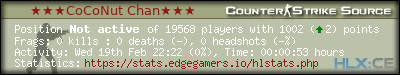 Rank | Map | Kills | % | Ratio | Deaths | % | Ratio | K:D | Headshots | % | Ratio | HS:K |