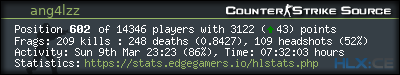 Rank | Map | Kills | % | Ratio | Deaths | % | Ratio | K:D | Headshots | % | Ratio | HS:K |